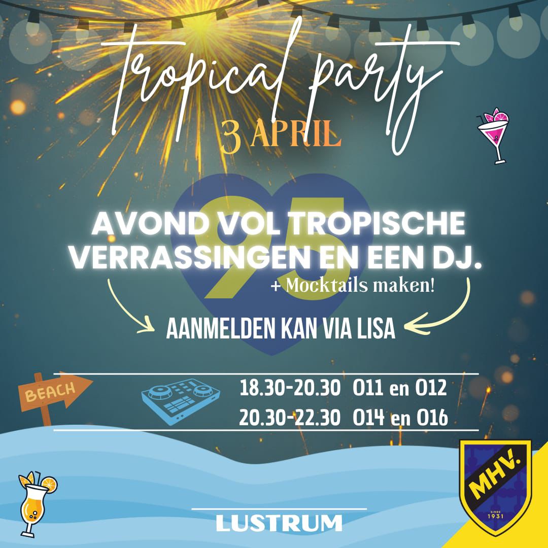 Zin een avond vol tropische verrassingen met activiteiten en een DJ? Incl drinken, lekkers en mocktails maken.